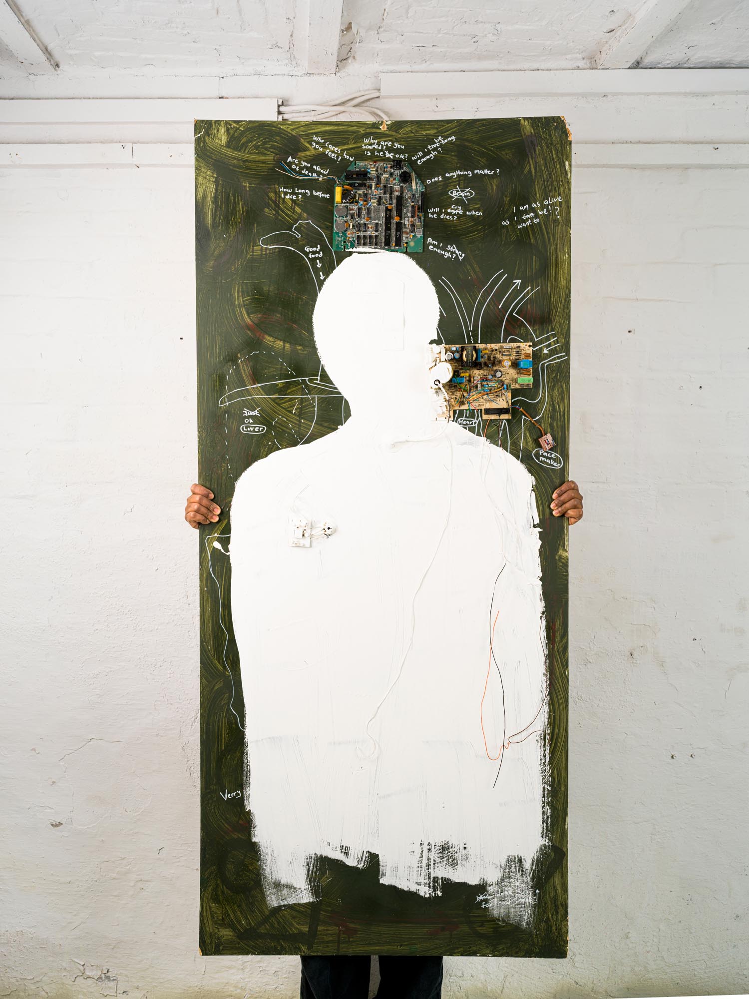 Born from a desire to imagine a world free from discrimination and marginalisation, Alex Akuete created a series of paintings depicting friends and family stripped of their personal identifiers. Facial features, skin colour, hair, and sex dissolve into silhouettes, leaving only the essence of human presence. In these figures, individuality is both erased and universalised, inviting viewers to confront what remains when all socially imposed labels are removed. By presenting bodies reduced to shadows, Alex Akuete asks whether equality could emerge in a world where the markers that divide us no longer exist. Would humanity unite beyond its subdivisions, or would new boundaries inevitably form? This exhibition invites reflection on our instinct to categorise, and challenges us to imagine a reality in which our shared human core becomes the foundation for connection.