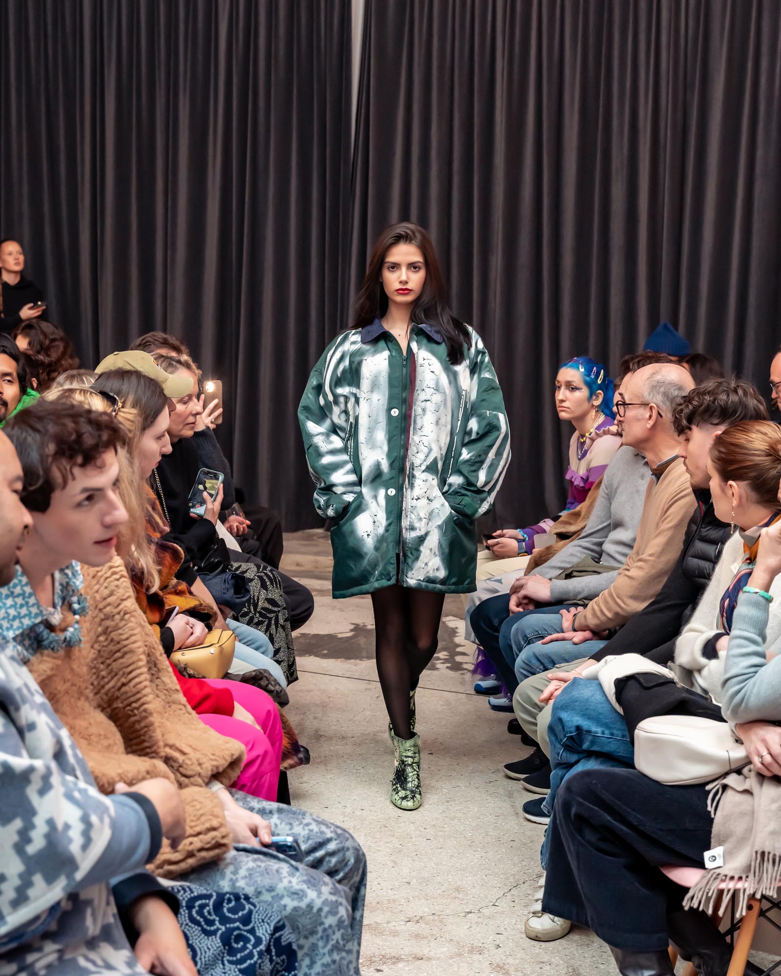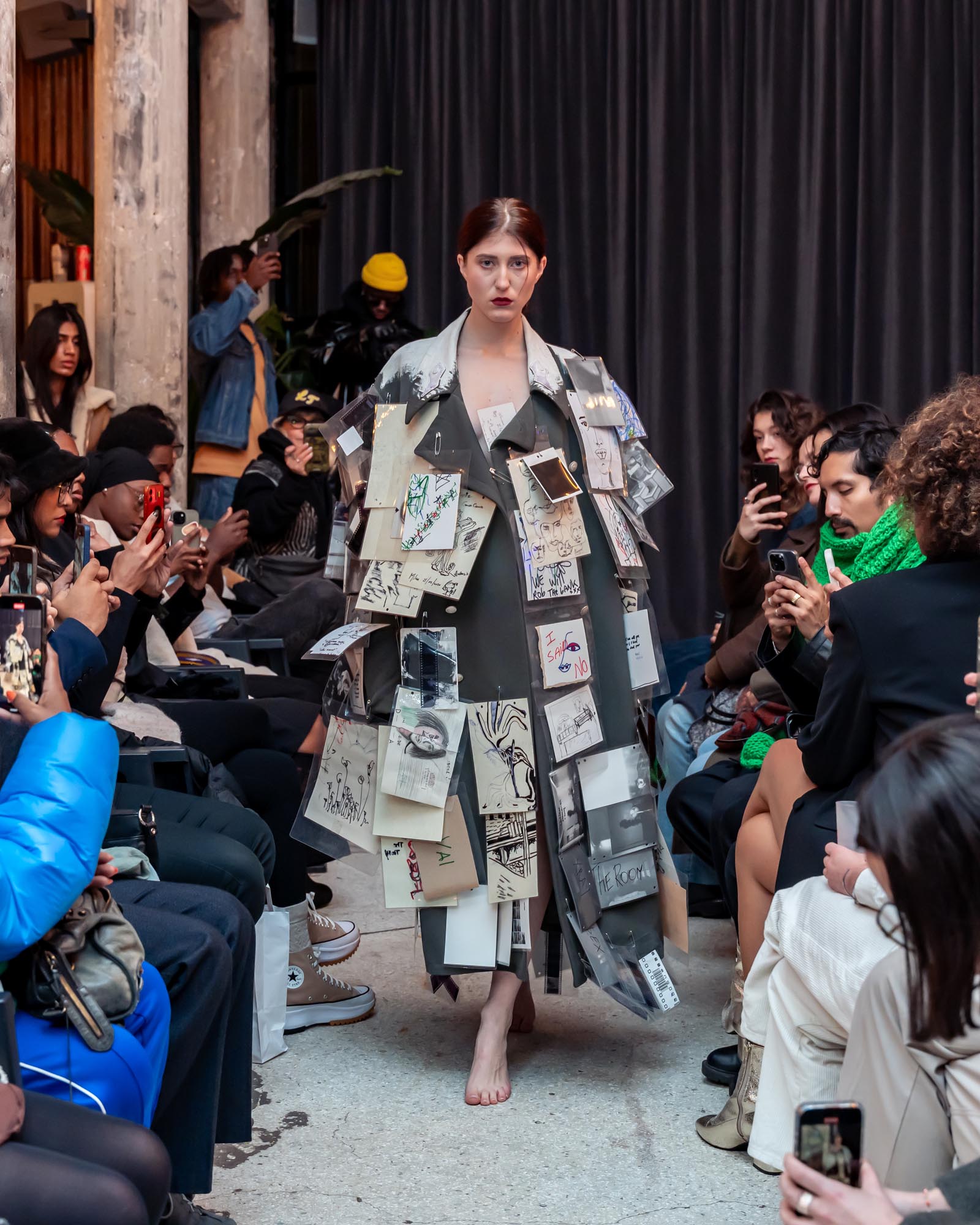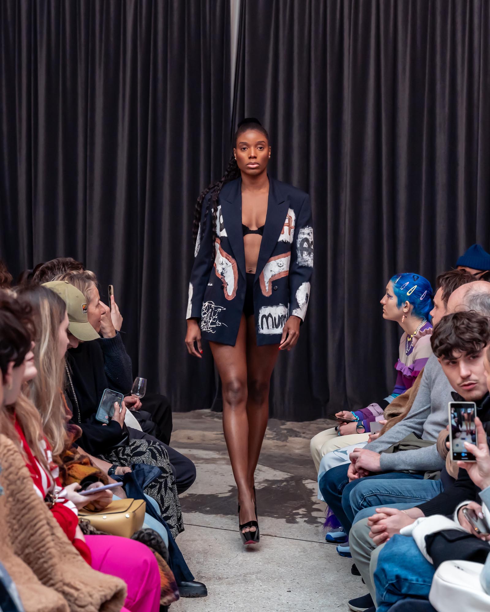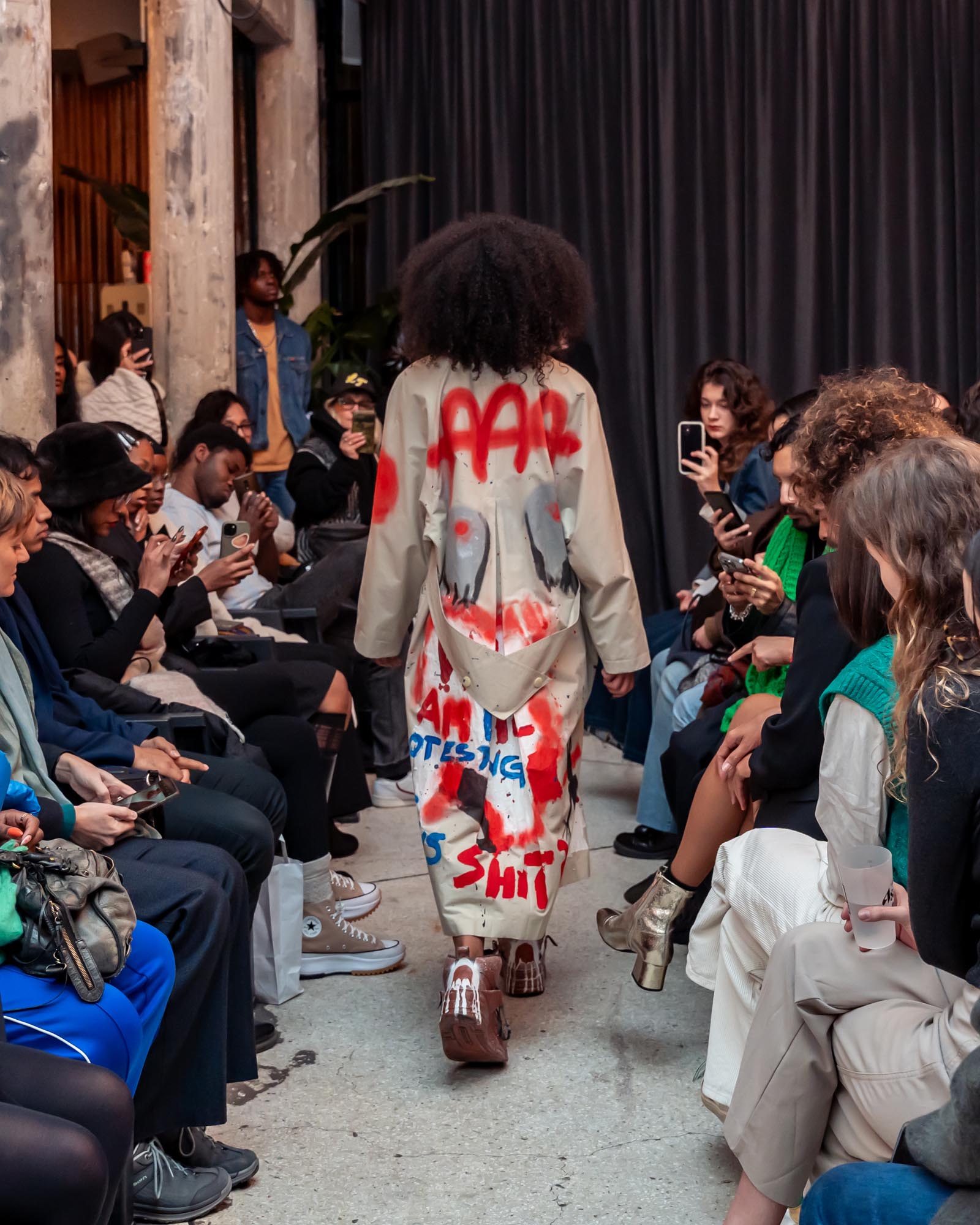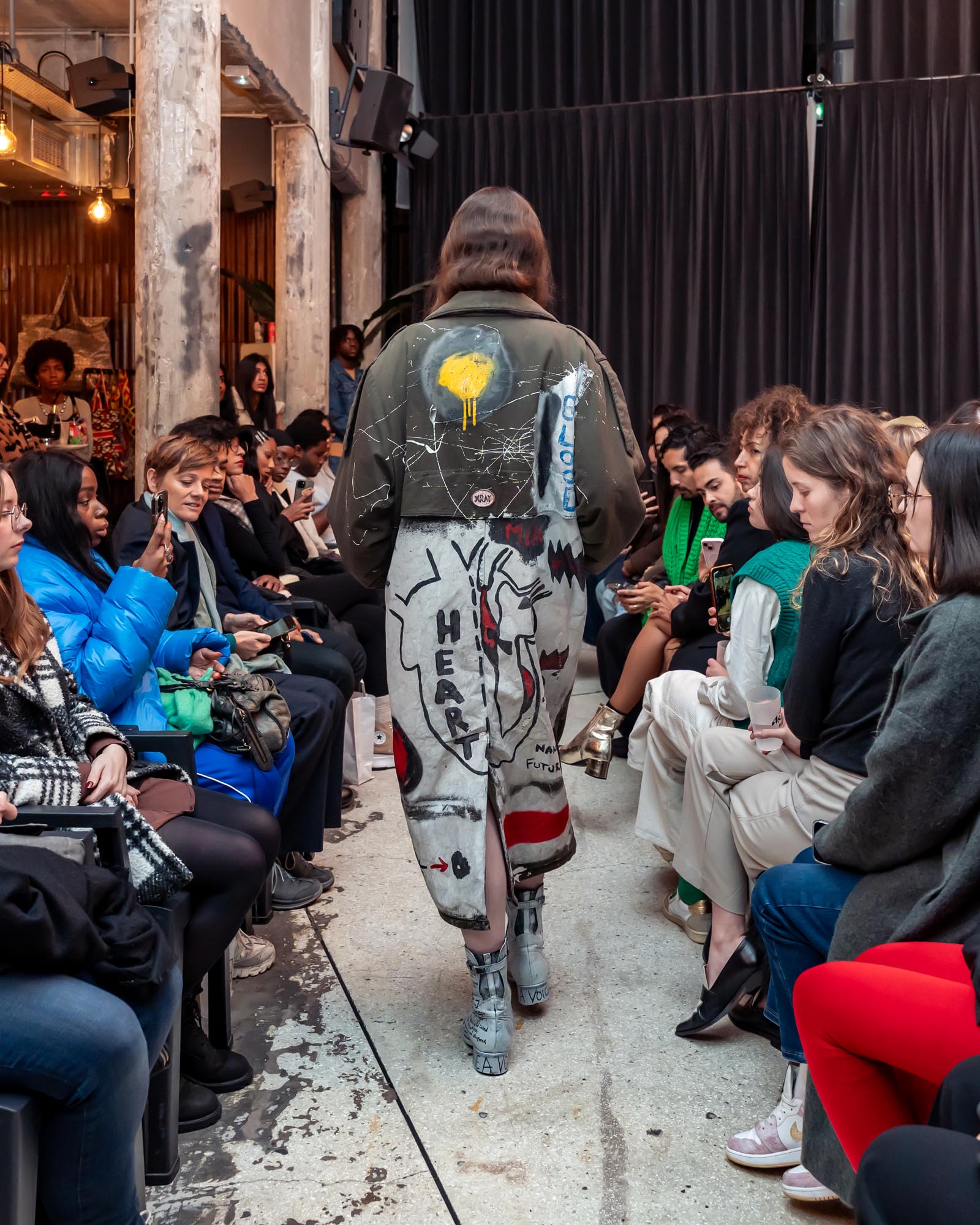 Upon arriving in Europe, Alex discovered the possibility of merging this ancestral language of body painting with his growing passion for fashion and garments. What once lived directly on the skin expanded into textiles, silhouettes, and wearable forms, allowing his ritual paintings to evolve into garments that carry memory and identity.
