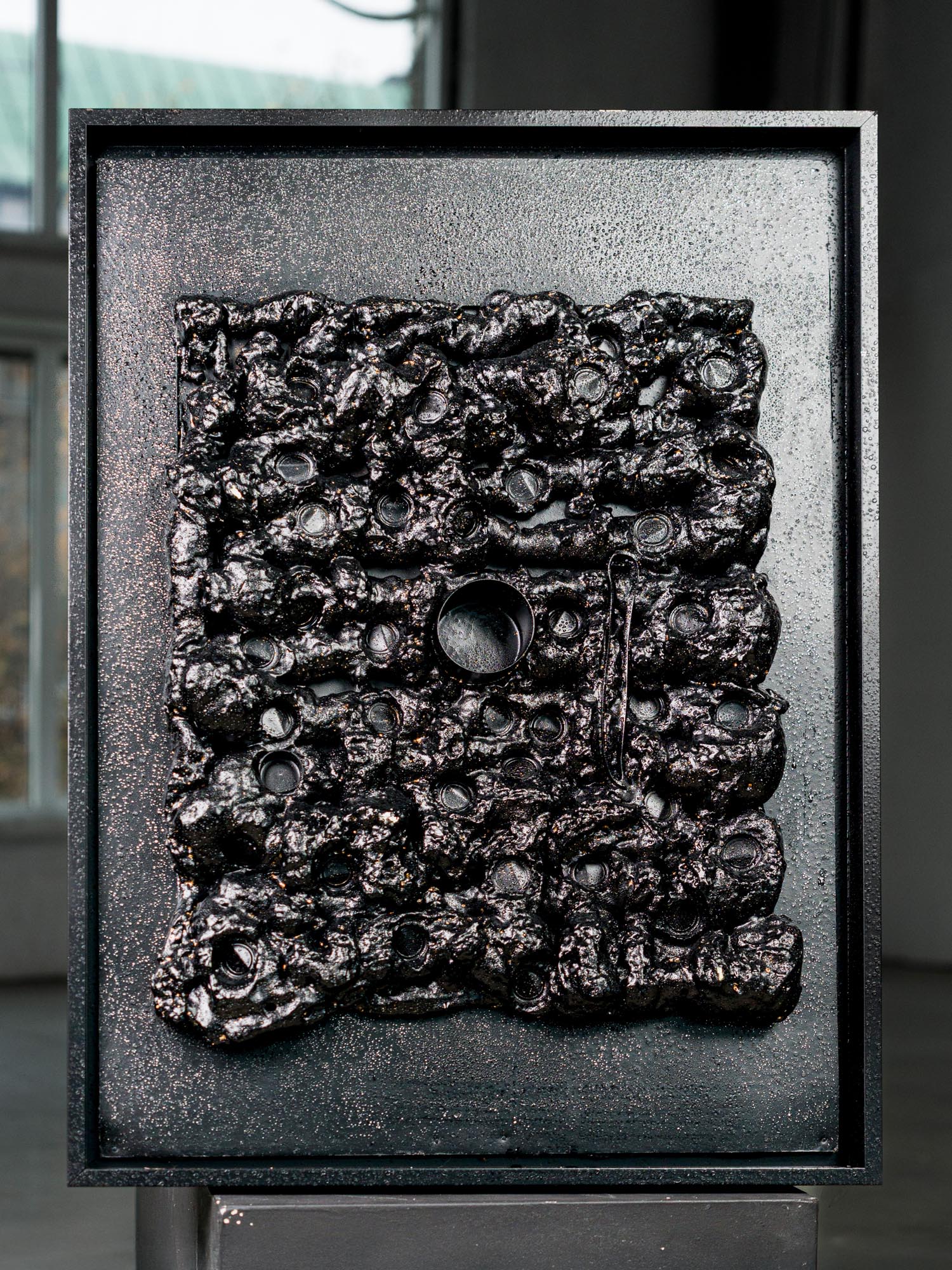 Raised by his grandmother in a West African village, Alex Akuete spent his earliest years witnessing rituals that shaped his artistic consciousness. Animal offerings, harvested crops, and prepared foods were laid before family-built shrines and left to decay with worms, ants, and flies gathering as signs that the gods had come to claim their due. These vivid scenes, both unsettling and sacred, formed his first and most enduring source of inspiration. In The Sacrifice Series, Akuete revisits these memories through a visceral visual language. Using stark blacks and whites, deepened colors reminiscent of darkened blood, and textures that suggest melting flesh, he reconstructs the atmosphere of the shrine without attempting to replicate its unmistakable smell. An odor he recalls as both horrible and strangely soothing. The works evoke the charged presence he once felt while staring at the shrine, capturing the tension between fear, reverence, and the unseen forces that shaped his childhood world.